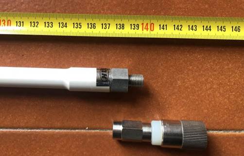adattatore da 5/8 a PL259, e risuonatori per le bande dei 12, 17, 30 e 60